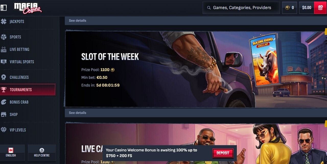 Mafia Casino propose un éventail de bonus allant du classique bonus de bienvenue jusqu’aux fréquents free spins sur les dernières machines à sous. Des promotions temporaires et des tournois viennent compléter cette offre, offrant ainsi de multiples moyens de booster votre capital jeu.